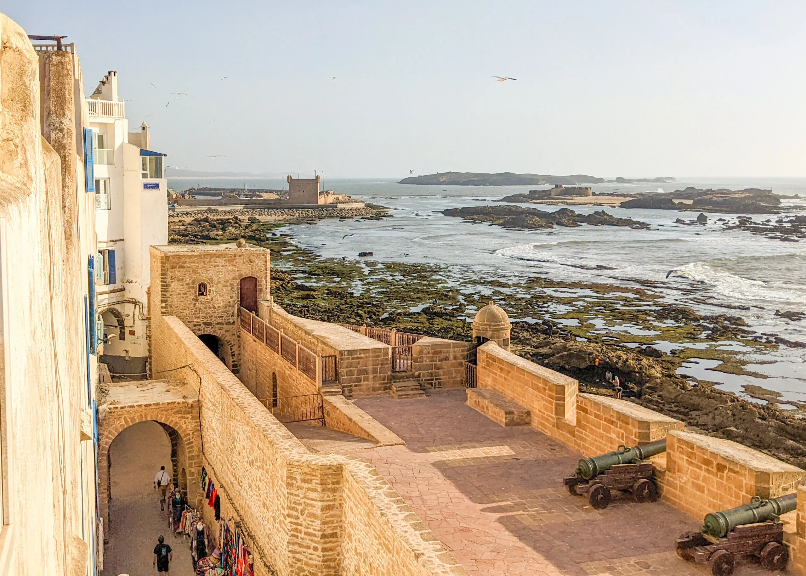 One day trip to Essaouira from Marrakesh, which was founded by the Portuguese in the 18th century. Although Essaouira (then called Mogador) was home to a series of forts beginning in the 15th century, it was only in the 1760s that the town, then called Mogador, was established and the walls were constructed. The town’s blend of Moroccan and French architecture is due to the fact that a French captive architect, Theodore Cornut, designed it under the orders of the Sultan Sidi Mohammed Ben Abdullah. In the 19th century, Mogador was the only port (outside of Tangier) that was open to European trade. This protected trade status attracted British merchants, who settled in the Kasbah and a large Jewish community. The town went into decline during the beginning of the 20th century as the French protectorate favored Casablanca and the Jewish community left. However, thanks to tourism (Gnawas Festival) and its fishing port, it is again on an upward swing. The Berber name means the wall, a reference to the fortress walls that originally enclosed the city. With its Norfolk Island pines and colorful fishing boats, relaxed Essaouira is a gem. Get acquainted with the town’s fascinating history on a guided walking tour. Here you might get small boats and sail for 7 km to Jimmy Hendricks Island where he used to stay for a long time to get the inspiration for many of his famous songs like Isabella and Spanish Castle Magic according outside of the breeding season of birds. Then enjoy free time to wander along the beach, visit art galleries or feast on freshly caught seafood. After enjoying the seafood lunch we drive back to Marrakesh .