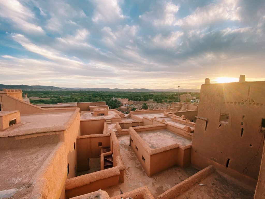 You will wake up early and walk across the dunes to see the beautiful sunrise; you will have your breakfast, pack your gear and ride back to where your car and driver is waiting to pick you up and continue to Ouarzazate via Tazarine where you will stop for lunch. In this area of desert landscape and fortified villages, which used to be the old caravan road of nomads bringing gold from South Africa to exchange for sugar and salt. You will see the magnificent palm garden of the Draa Valley. Arrive into Ouarzazate and check into the hotel.